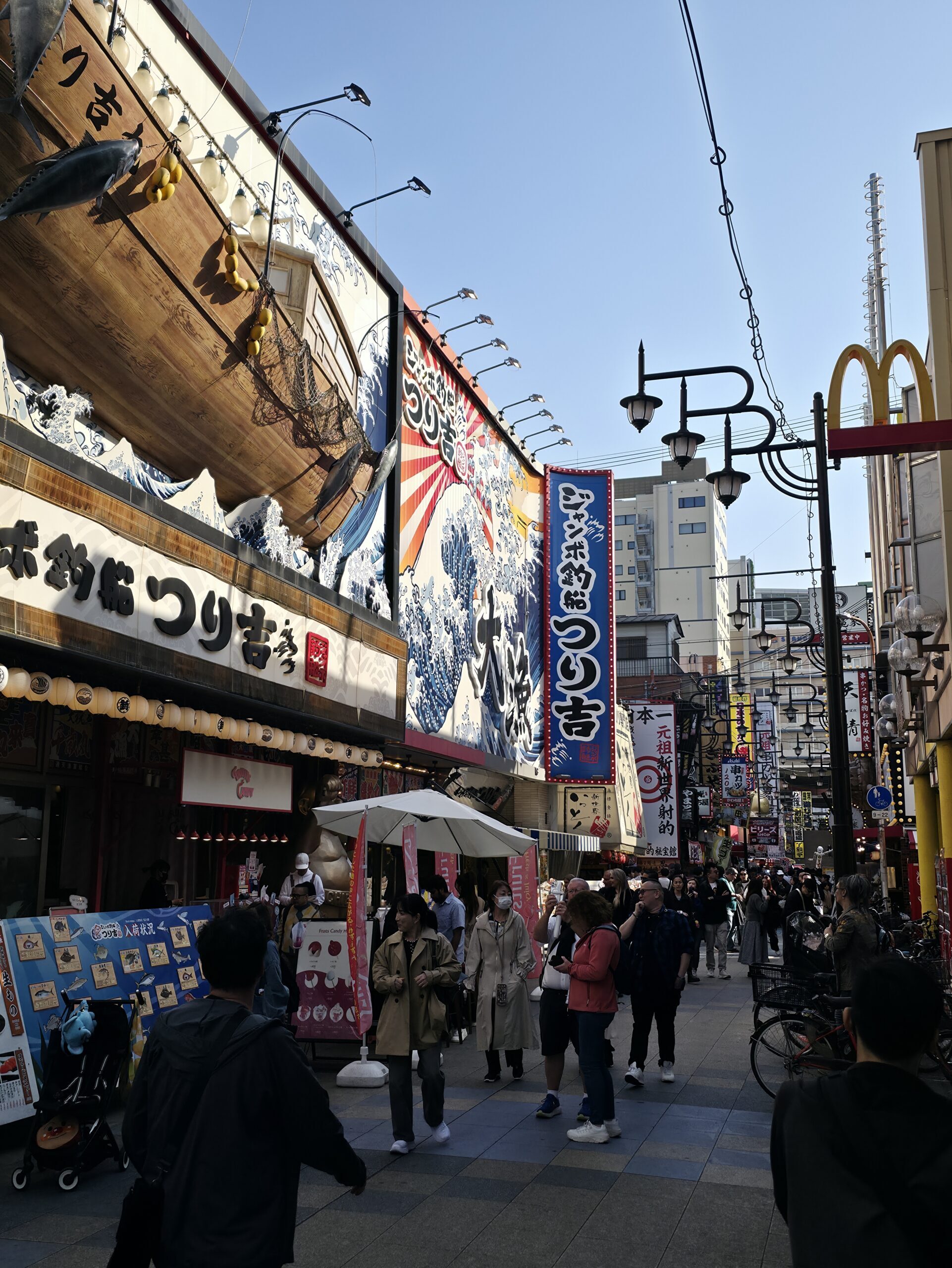 I started the day early at Osaka Castle. It’s hard not to be impressed by the scale and beauty, especially with sakura blossoms framing the stone walls and turrets. Many don’t know, but the current castle is actually a modern reconstruction, but it still holds huge historical significance as a symbol of unification during Japan’s feudal era. The castle grounds are huge, with quiet ponds and paths that made for a great morning walk.