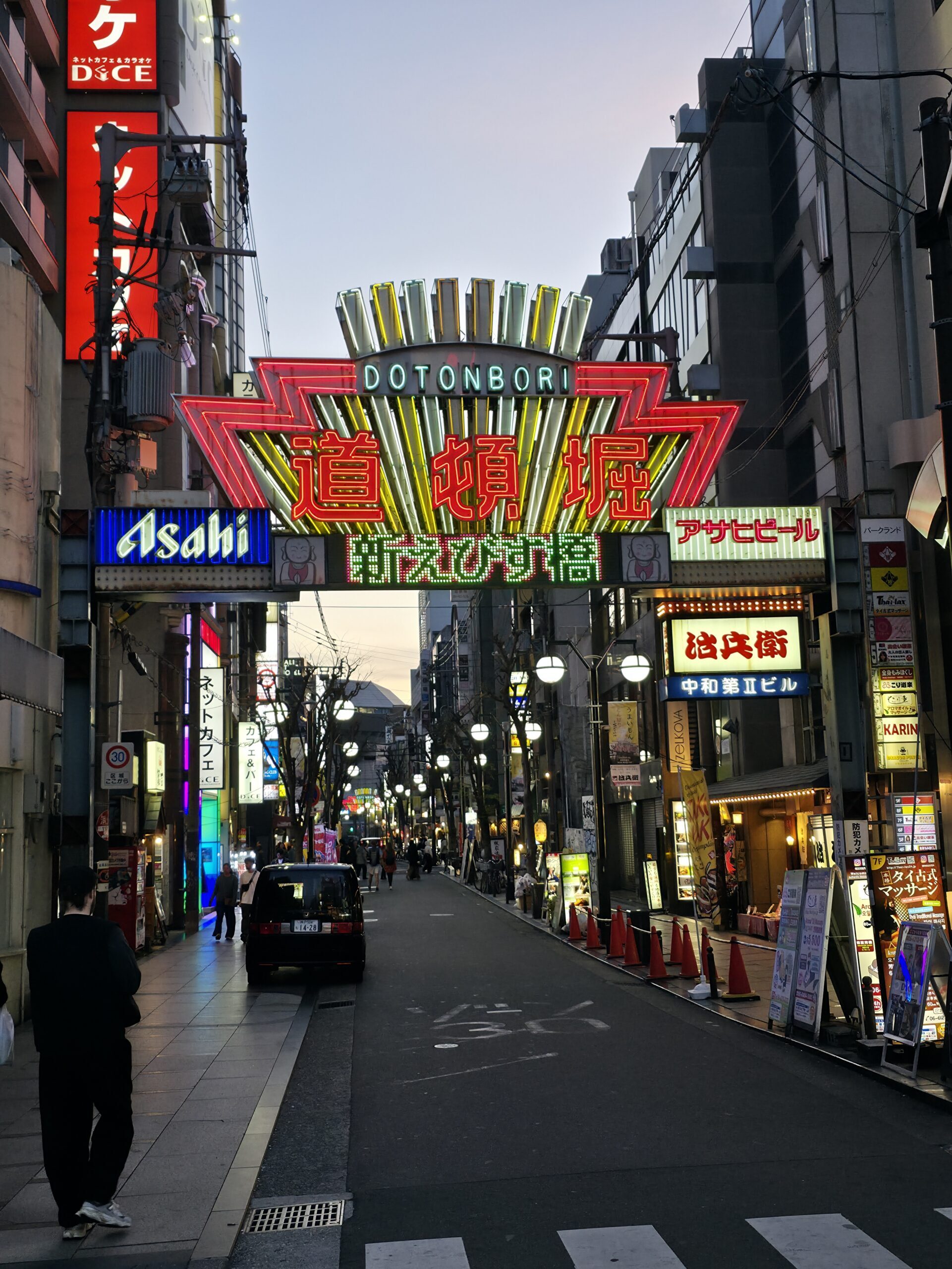 After checking into my hotel, I headed straight to Dotonbori. Osaka hits entirely different than Tokyo. Osaka feels louder, livelier, and grittier—think a West Coast version of Chicago. Neon signs stacked on top of neon signs, all glowing over the river, each trying to outdo the next. I grabbed the usual tourist shot with the Glico Running Man, then dove straight into the street food.