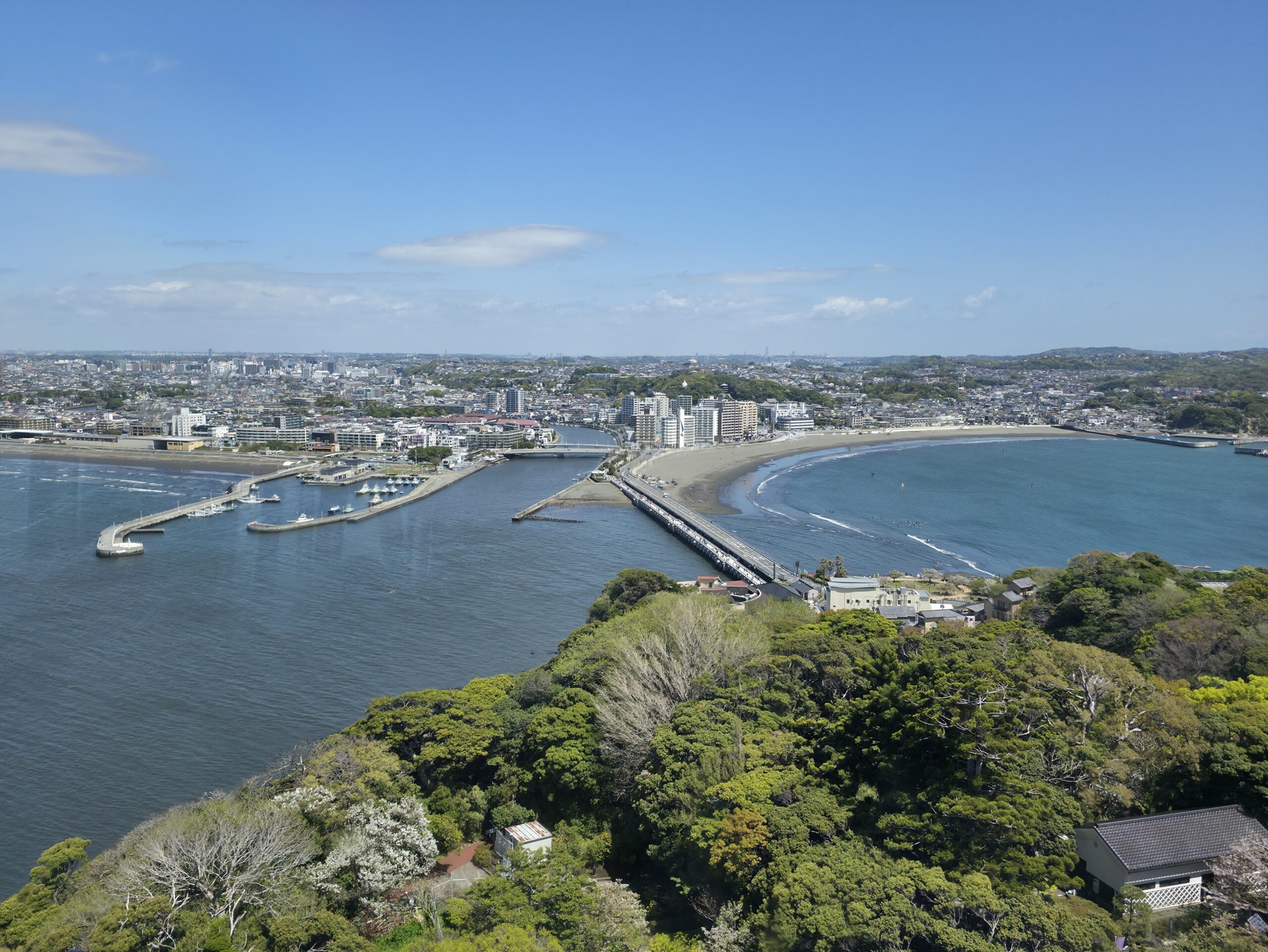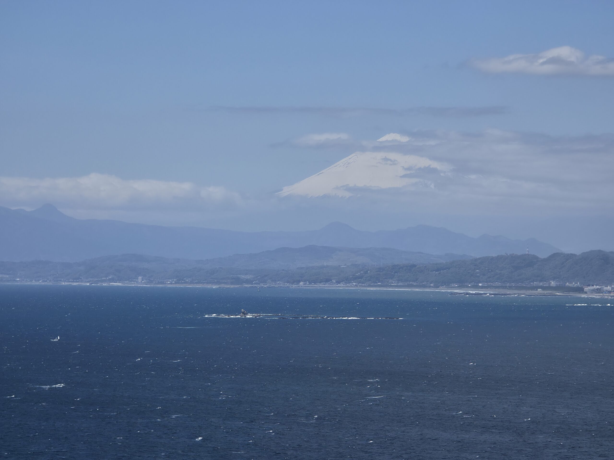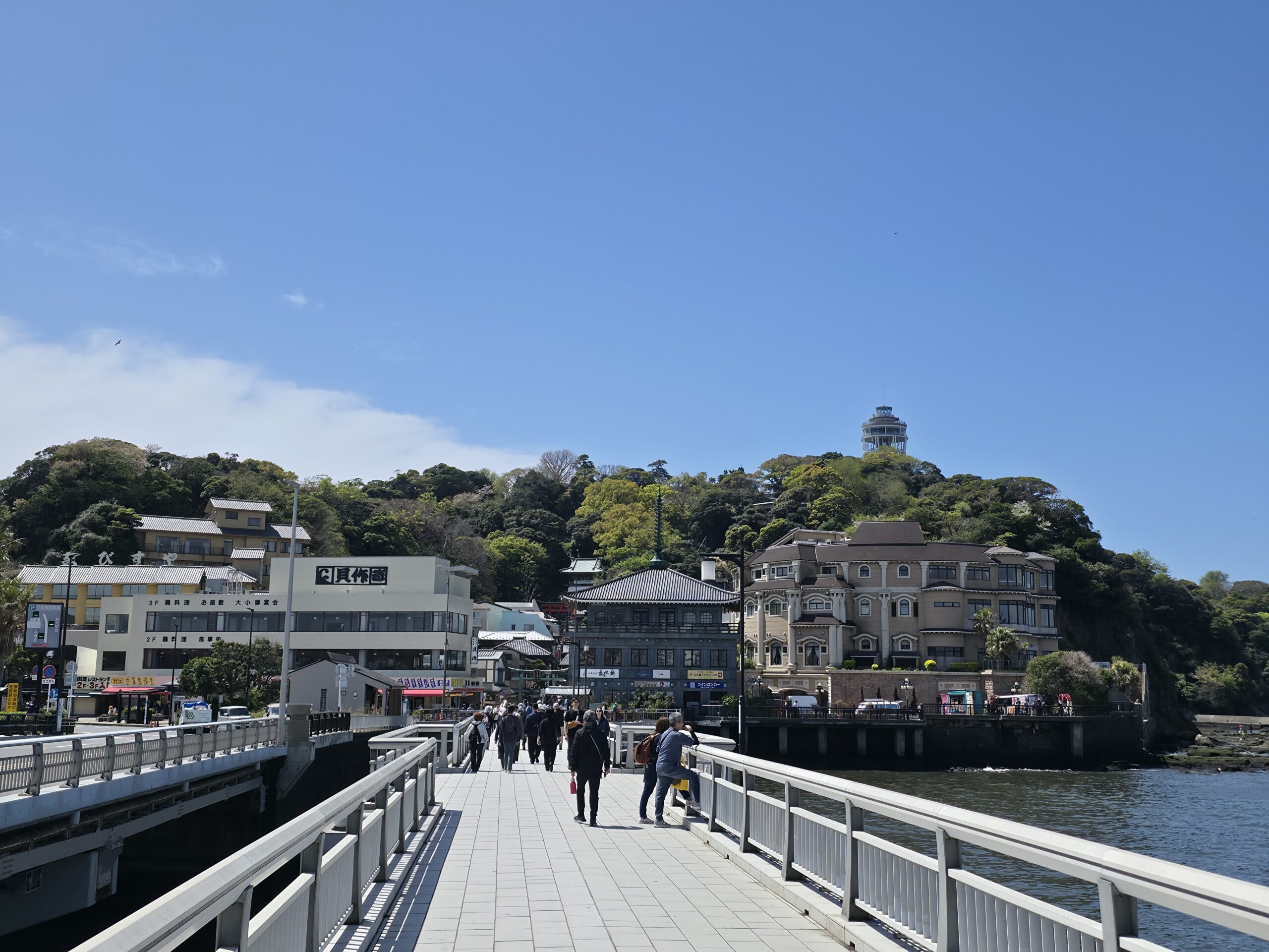 Once I arrived on Enoshima, the day turned around. The walk to the top of the island was a workout, but totally paid off. The views from the Sea Candle were unreal, with blue ocean stretching in every direction and Mt. Fuji visible in the distance. Despite the strong winds, I waited at the top for over 30 minutes for the clouds to give way to Fuji. While I was up there, a fellow traveler asked to interview me for their YouTube channel. It was fun being on the other side of the camera for a change.