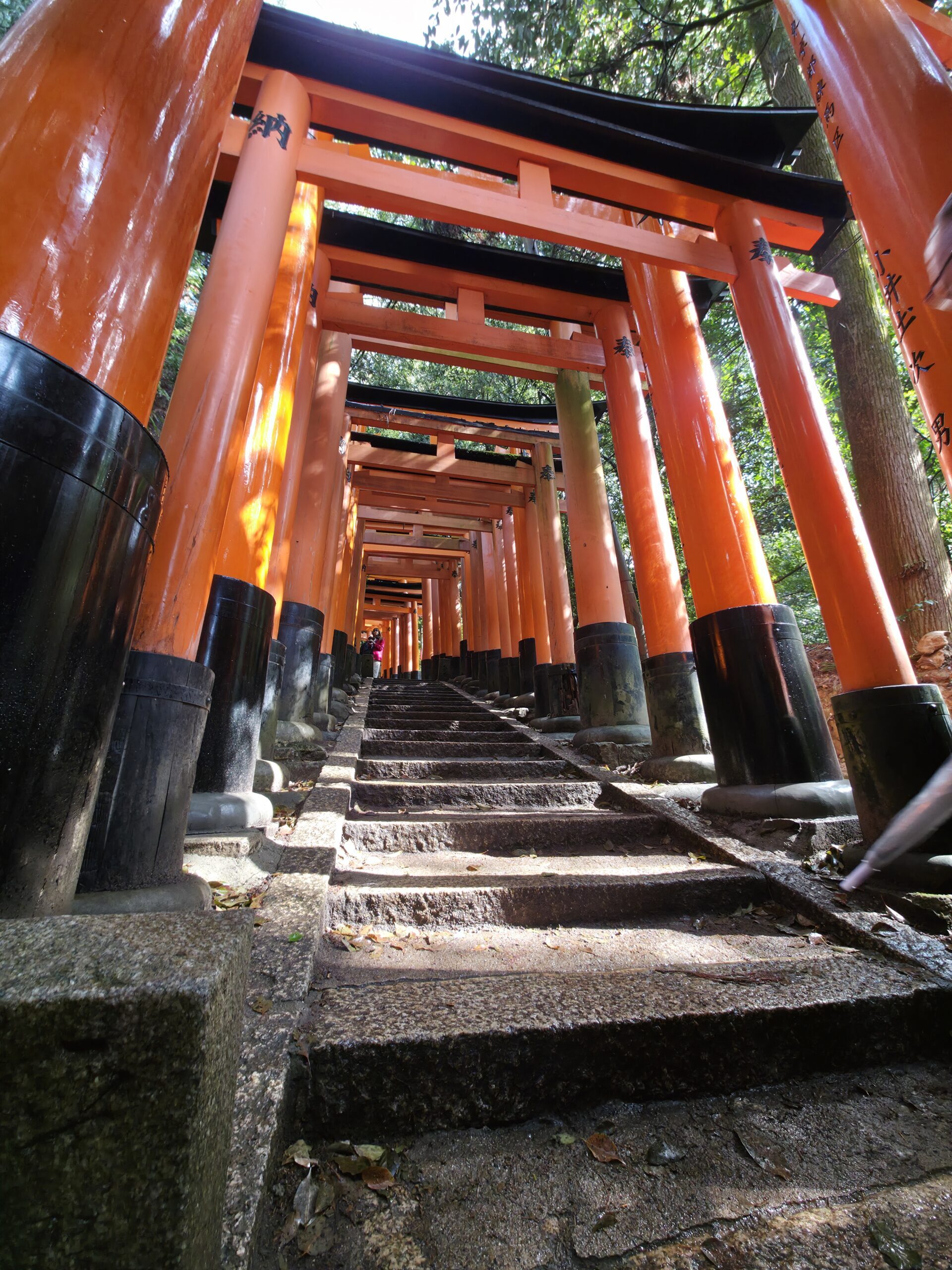 I started the day early with the full hike up Fushimi Inari. Boy, was it a workout—28,000 steps and 122 floors climbed (plus 92 down)—but completely worth it. The vermilion torii gates wind endlessly through the forest, creating this surreal, almost meditative tunnel. It’s crowded at the base, but it thins out the higher you climb. By the time I reached the summit, Kyoto opened up below in a wide, hazy view. Along the way, I met a kind couple from Germany. We traded photos and stories before parting ways. I always appreciate sharing stories with fellow travelers.