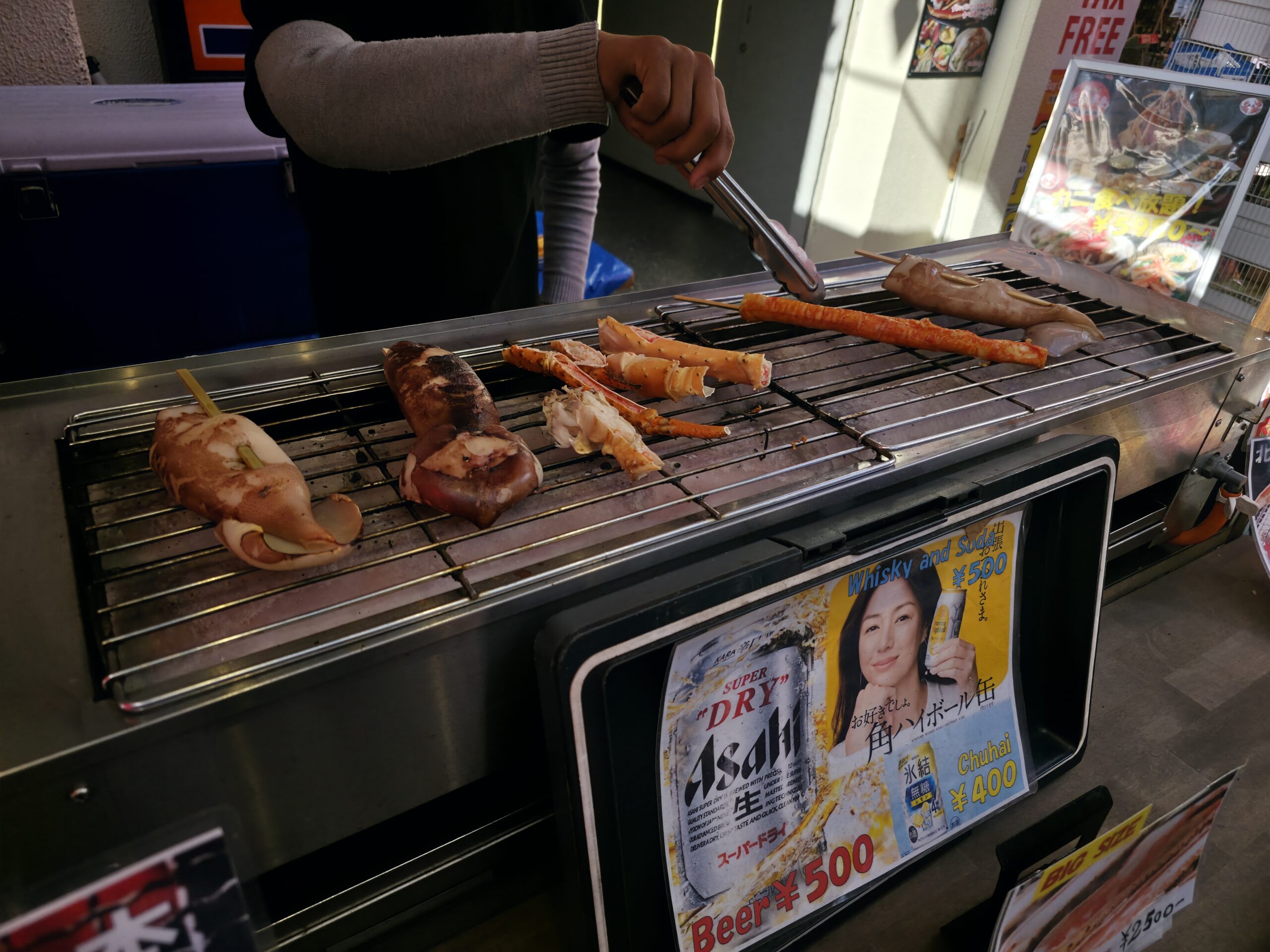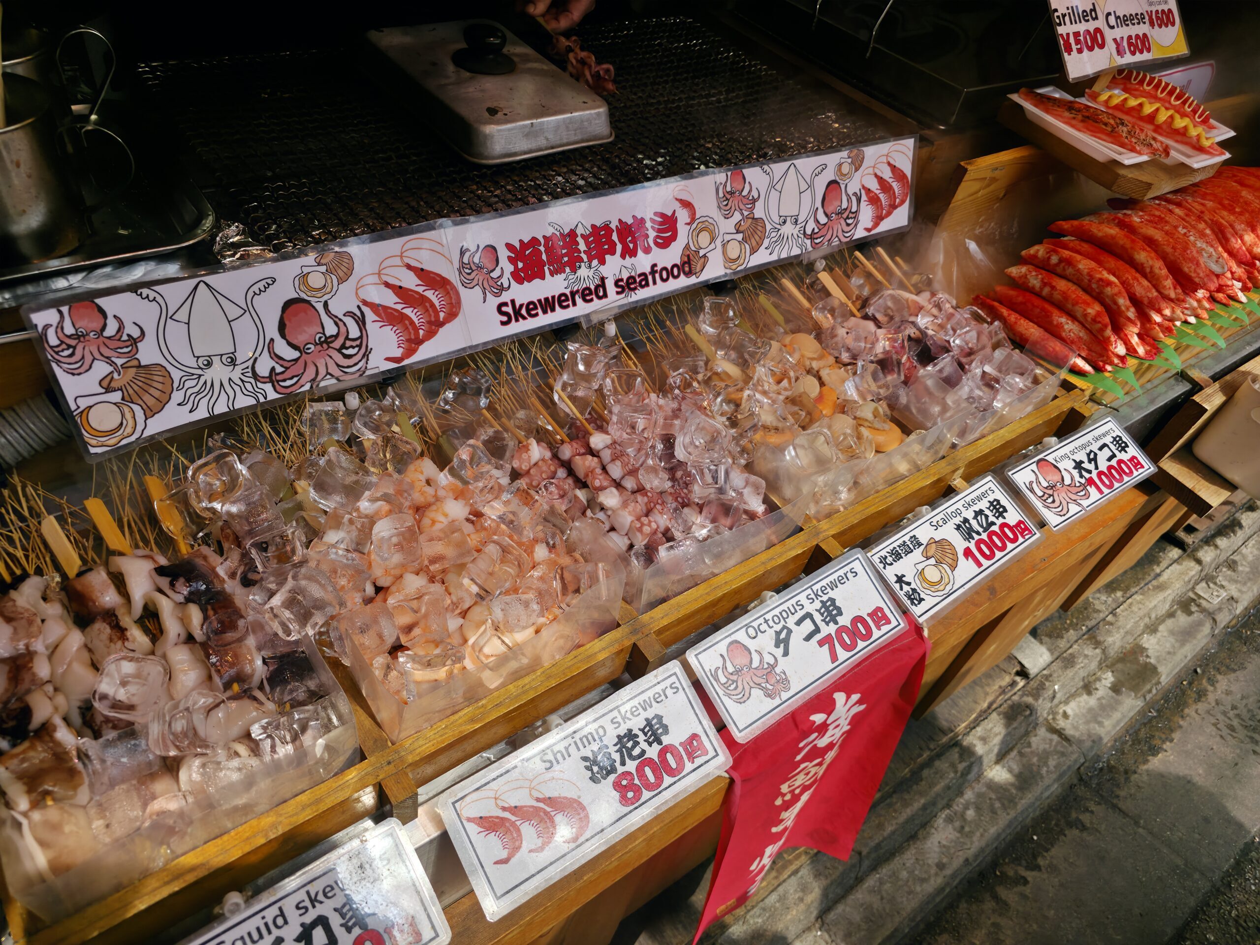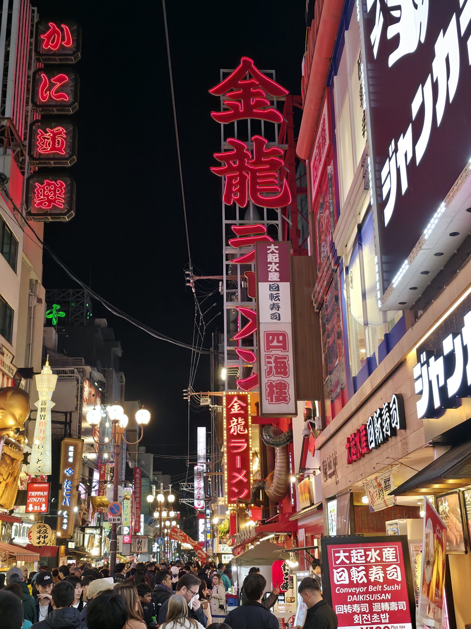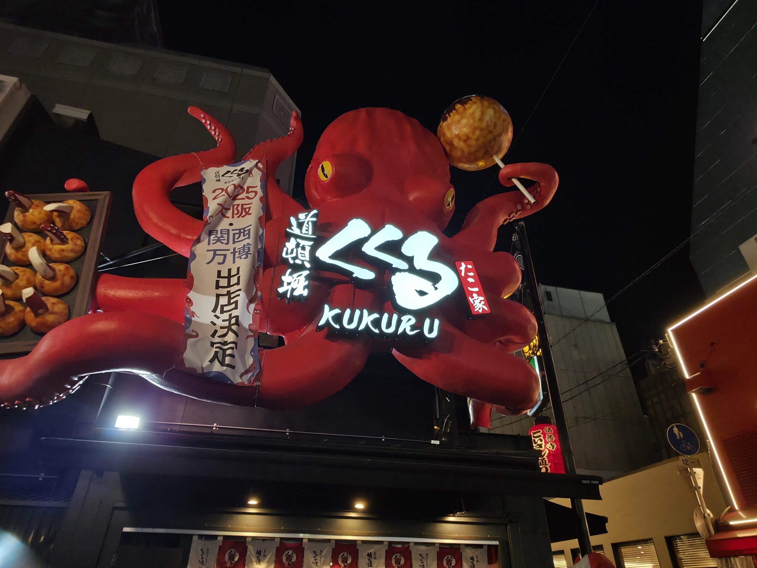 Osaka is known as Japan’s kitchen for a reason, and it absolutely lives up to the name. The takoyaki was unreal, made with whole baby octopus, piping hot with a creamy center and crispy edge. Easily the best I’ve ever had. I also grabbed grilled squid on a stick, brushed with soy sauce and flame-seared just right. I didn’t make it to okonomiyaki or kushikatsu that night, but the smell of sizzling batter and meat was everywhere.