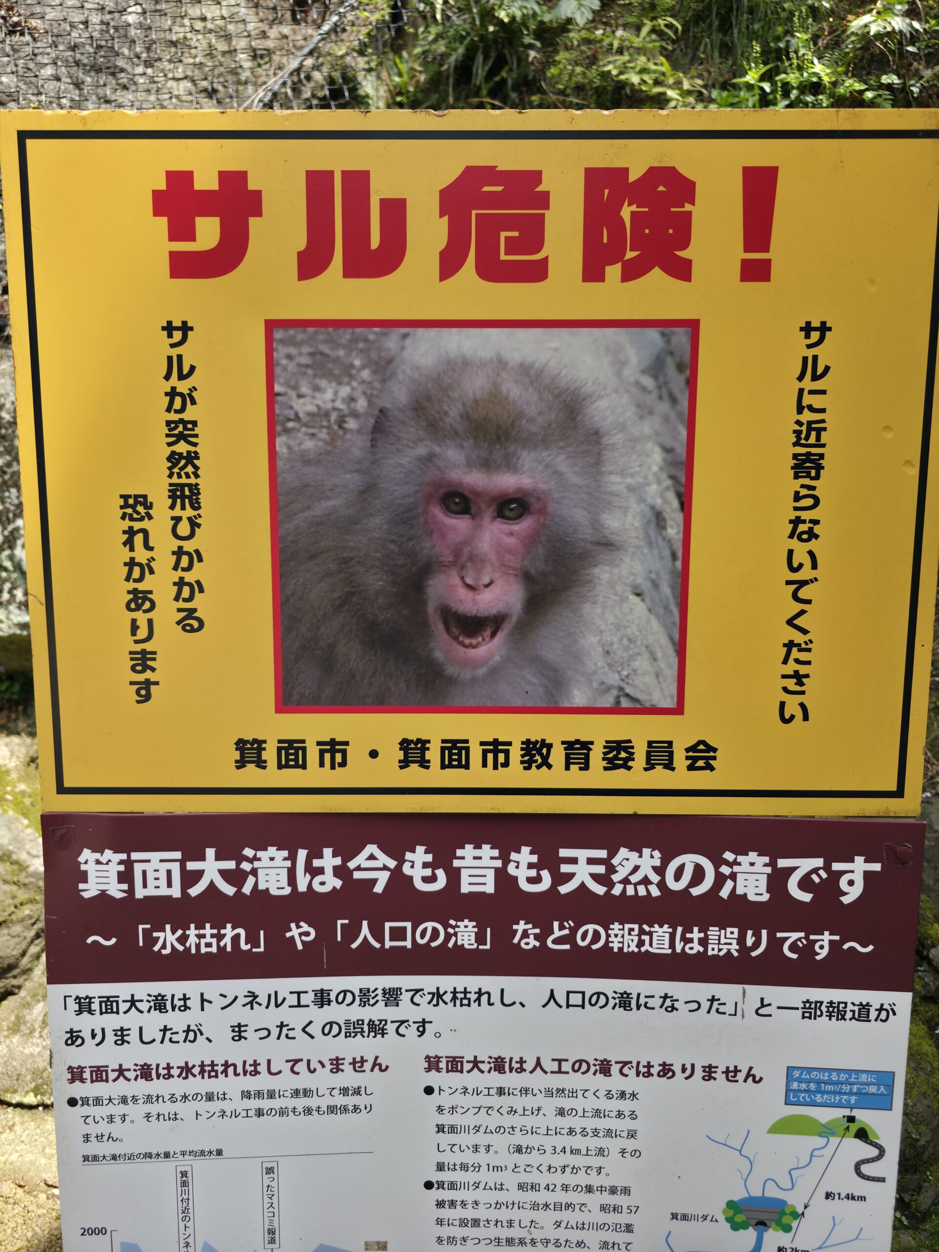 I headed out to Minoh Falls for a bit of nature outside Osaka. The walk to the falls took about 45 minutes from the station and followed a winding path along the river, shaded by trees and lined with little snack stands and traditional souvenir shops. It was hotter than I expected, and the incline caught up with me fast, but the scenery kept it interesting, especially the warning signs to NOT FEED THE MONKEYS!