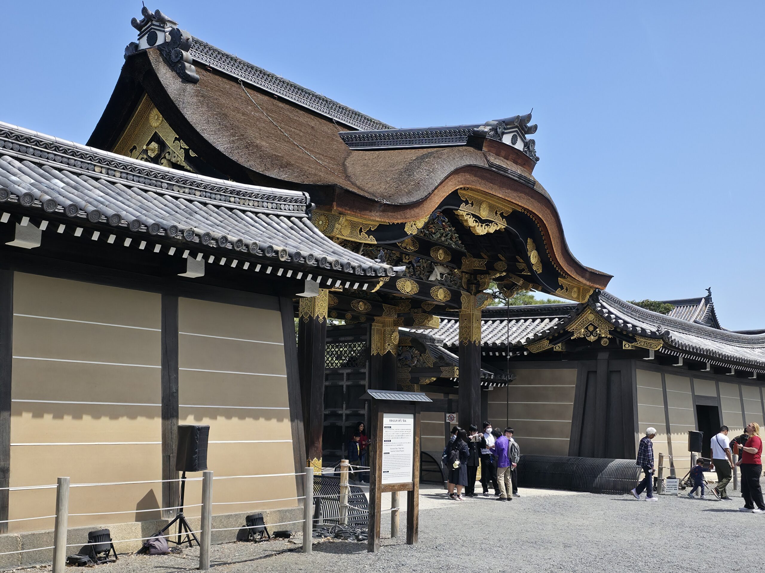 Inside Ninomaru Palace, I walked across the famous nightingale floors. These floors, known as uguisubari,  are unique to Japanese castles. The wooden floorboards chirped with every step. It was a built-in alarm system, meant to catch anyone trying to sneak through, even ninja. The sound is subtle, more like a birdsong than old  creaky wood, and it follows you through dim corridors lined with shoji doors and golden screen paintings. The rooms feel both elegant and serious, like they were built to impress but also to remind you who’s the boss.