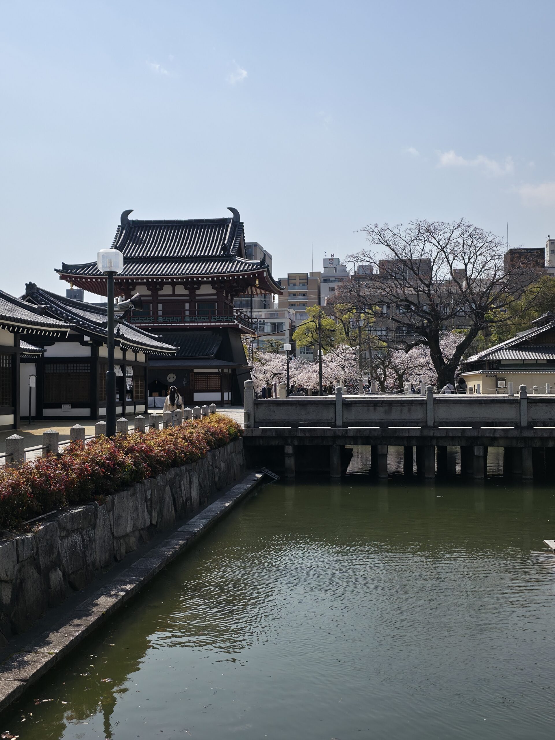 Next was Shitennō-ji, which turned out to be one of the biggest surprises of the day. I knew it was old, but I didn’t realize it’s actually the oldest officially established Buddhist temple in all of Japan.   The layout is symmetrical and open, with a beautiful five-story pagoda rising up in the center. With the cherry blossoms in full bloom, it looked absolutely unreal and quintessentially Japanese.