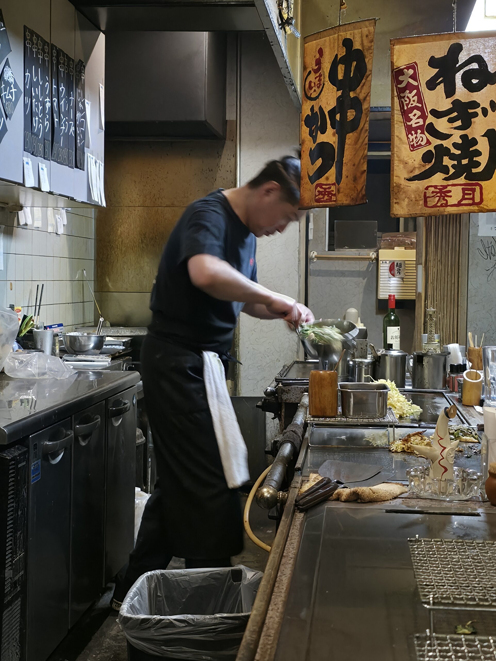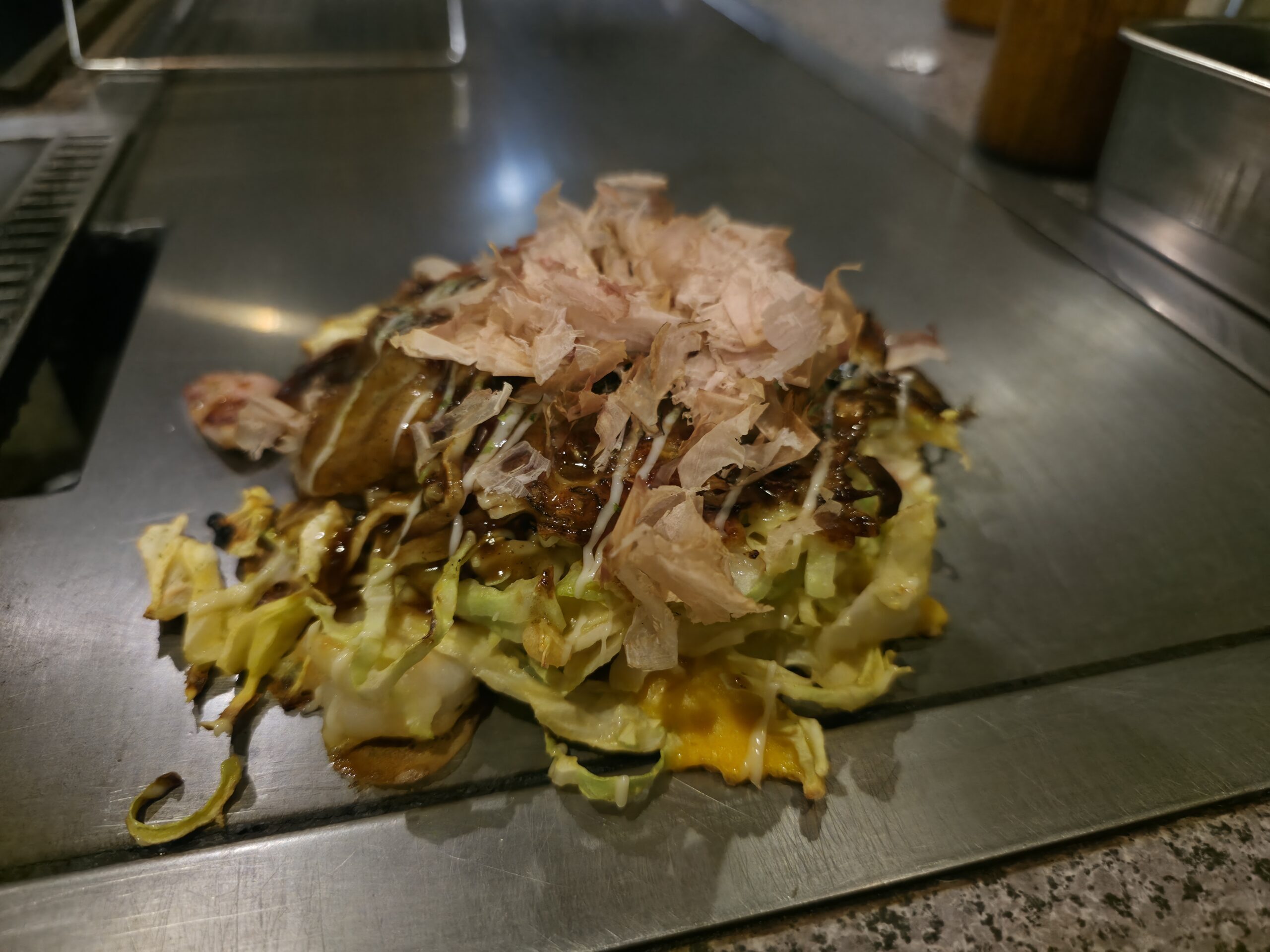 I ended the day back in Osaka with okonomiyaki. If you’ve never had it, it’s a type of savory pancake made with cabbage, egg, flour, and whatever toppings you want. Its finished with a sweet and savory sauce and kewpie mayo. The chef spoke a little English and asked where I was from. When I said “America,” he grinned and started enthusiastically humming the national anthem. For the rest of the night, I was simply “America.” The group behind me was “Colombia.” Every time he brought something out, he’d call us by our countries with a big smile. It was funny, casual, and instantly made the place feel more personable. The vibe was relaxed with people chatting across tables, laughing, with no formality whatsoever. The food was great, though heads up: some restaurants in Japan still allow smoking, and this was unfortunately one of them. If you’re looking for it, keep your eyes peeled for a small sign with 秀月 (Shugetsu) on it, tucked quietly into the neighborhood at 1 Chome-19-13 Higashinakajima.