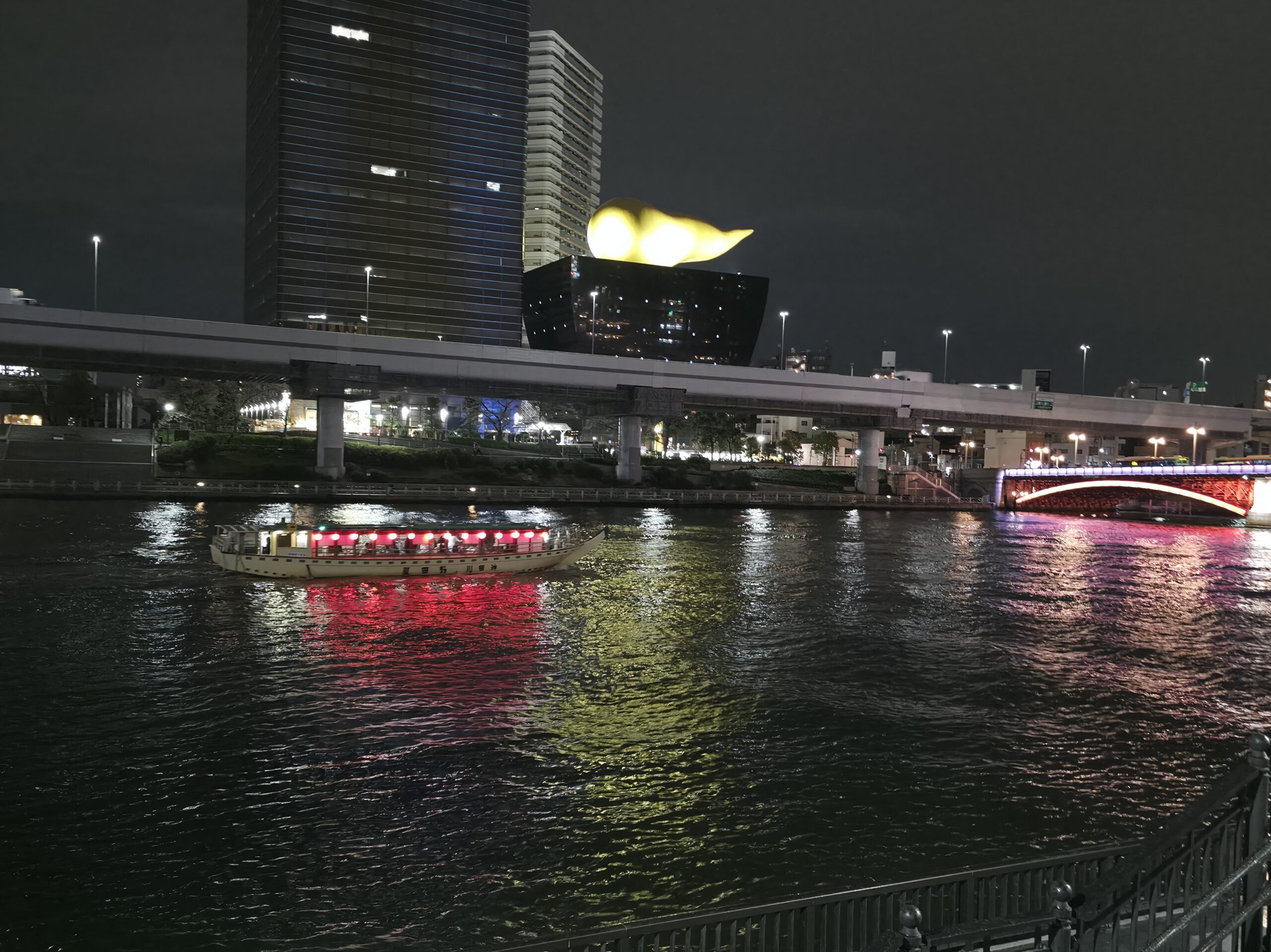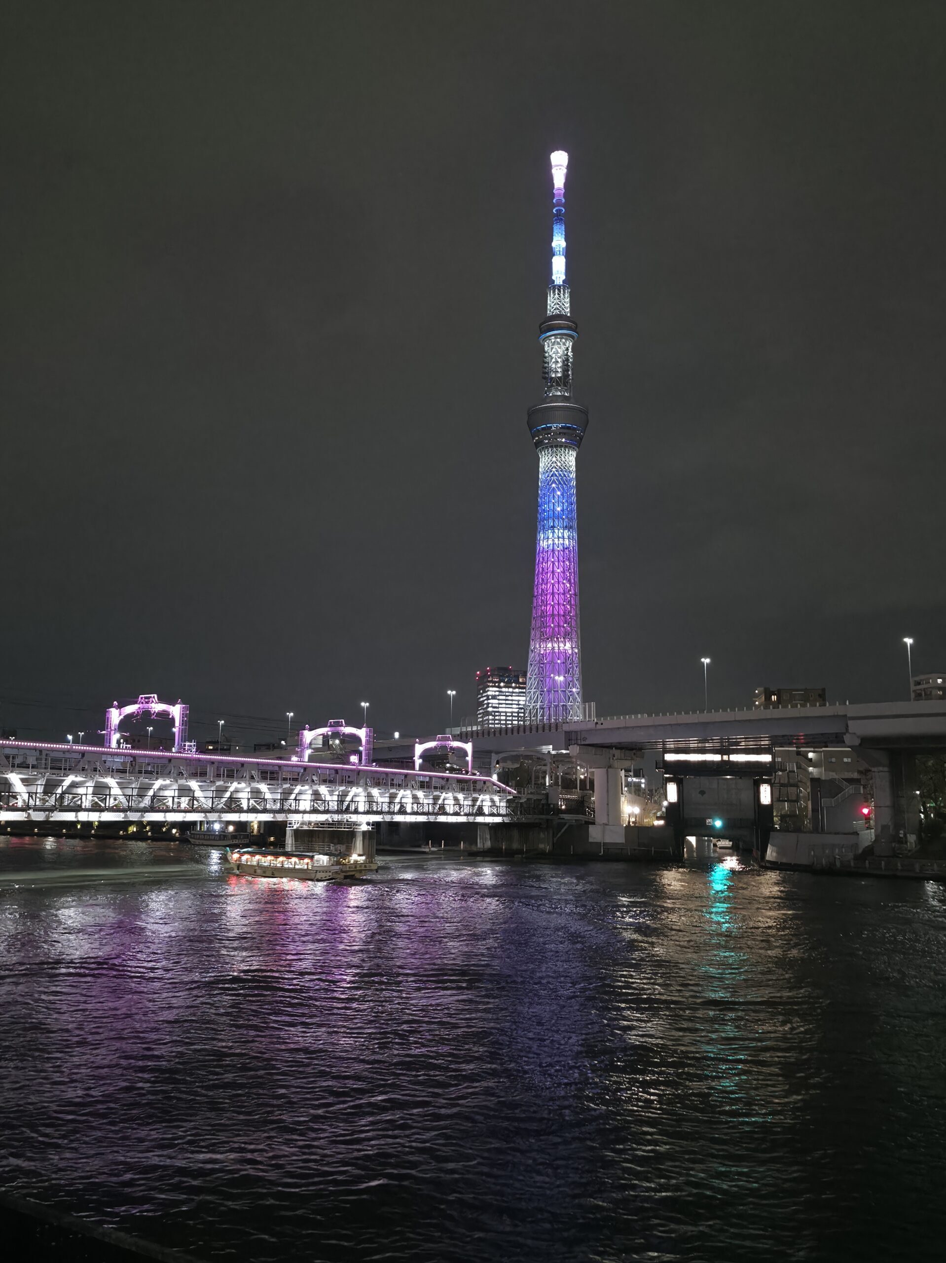 I ended the night with a walk along the Sumida River. The Tokyo Skytree was lit  purple, blue, and white, casting colorful reflections over the water. Across the way was the Asahi building with its unique golden top. It’s a strangely familiar landmark now. Then, it hit me. The trip was winding down, and before I knew it, I’d be leaving. The city was calm, the lights reflected gently off the river, and a quiet sadness crept in.