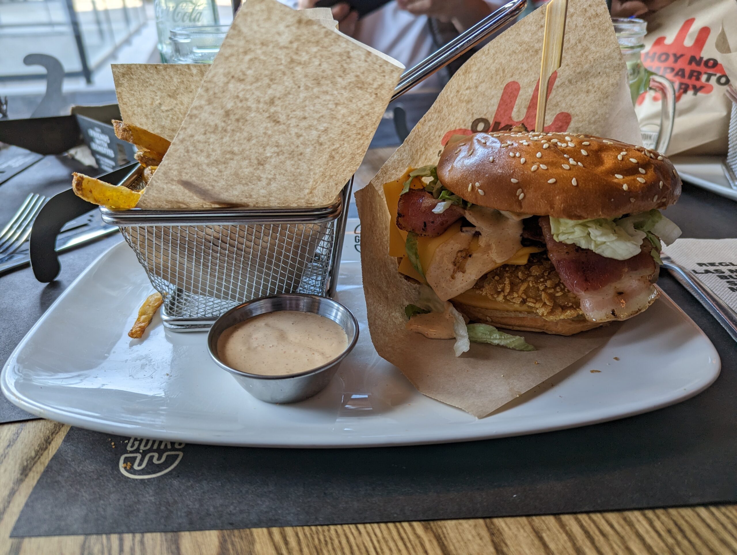 Before leaving Barcelona for the long drive back to Milan, we refueled at Goiko, a burger joint where the menu reads like a Hollywood casting list, with burgers named after Kevin Costner, and, naturally, Kevin Bacon. I went with the Kiki, a chicken sandwich, while my coworker went all-in on the Smoke Burger (see the obvious photo). Eating classic American-style burgers in Spain felt a little stereotypical—because yes, Americans do love their burgers—but sometimes you just need a good burger.