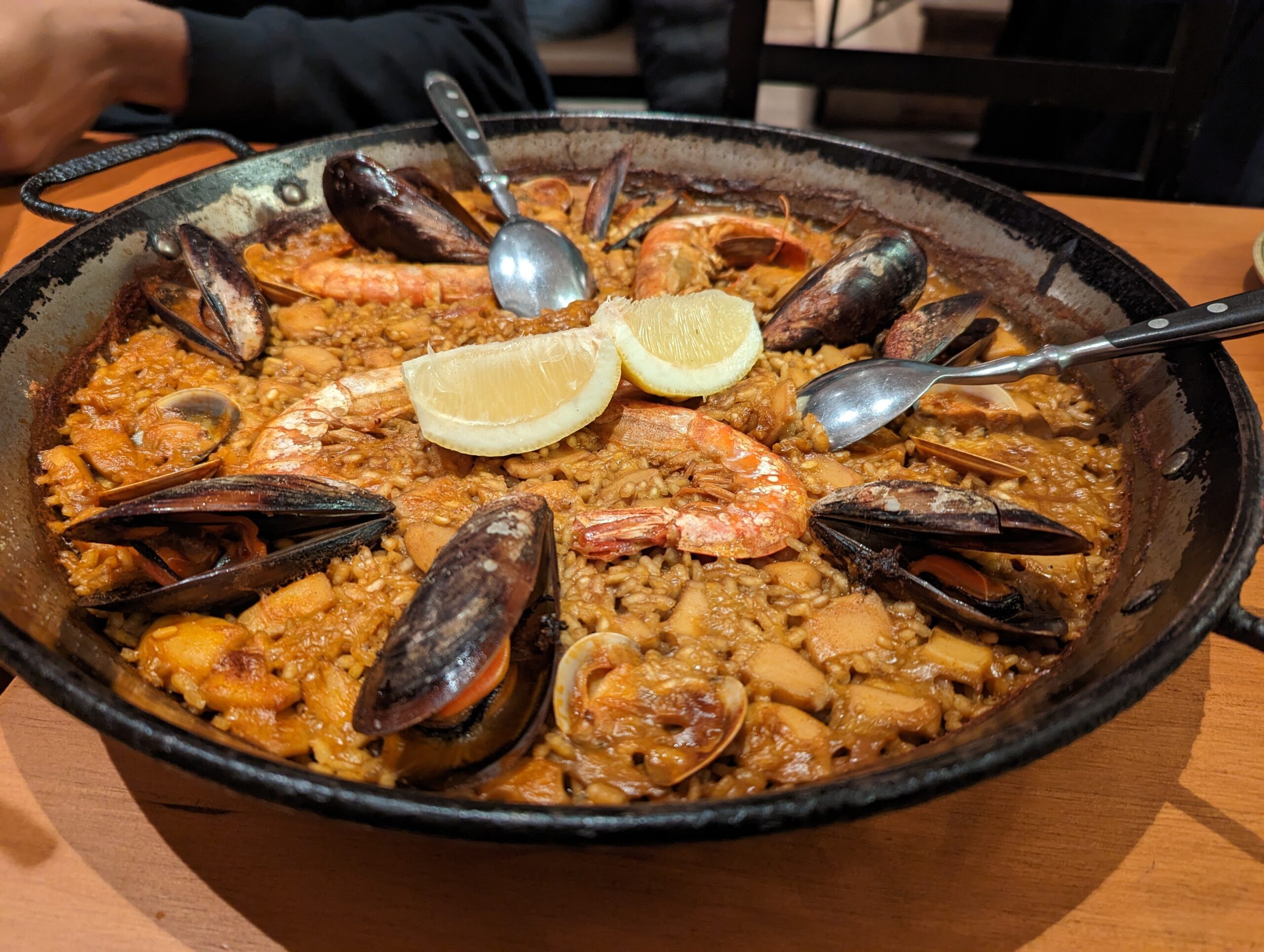- Paella de marisco – Classic seafood paella loaded with mussels, shrimp, and perfectly cooked, slightly chewy rice that soaked up all the saffron and seafood juices.