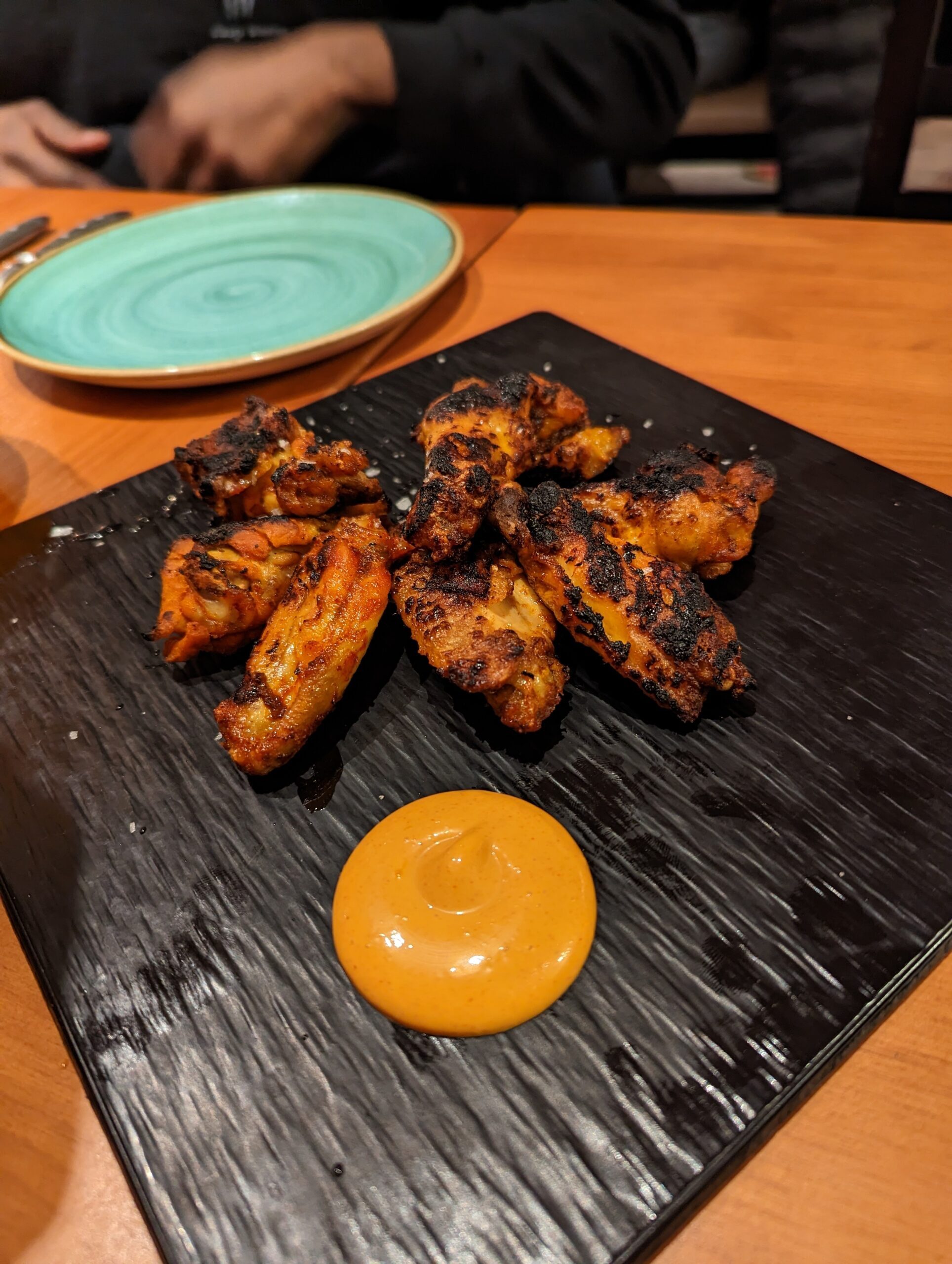 - Alitas de pollo a la brasa con salsa picante – Smoky, grilled chicken wings coated in a vibrant, spicy sauce. Yes, wings…in Spain.