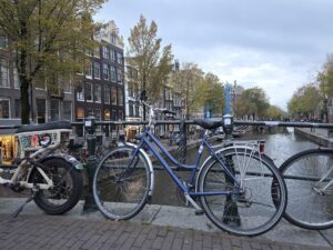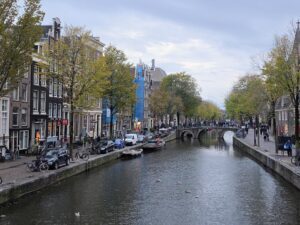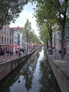Crossing into the Netherlands, the landscape flattened almost instantly. I knew around a quarter of the country is below sea level, but seeing is believing. I spotted a few of the classic windmills too. What surprised me most, though, was how artistic Amsterdam feels. Even the office buildings lean into design with experimental shapes, lopsided silhouettes, structures broken into different sections resembling something more like a post-modern sculpture. One building looked like it had split into three with the middle segment was jutting forward with jagged edges, almost like it had broken free from the rest.