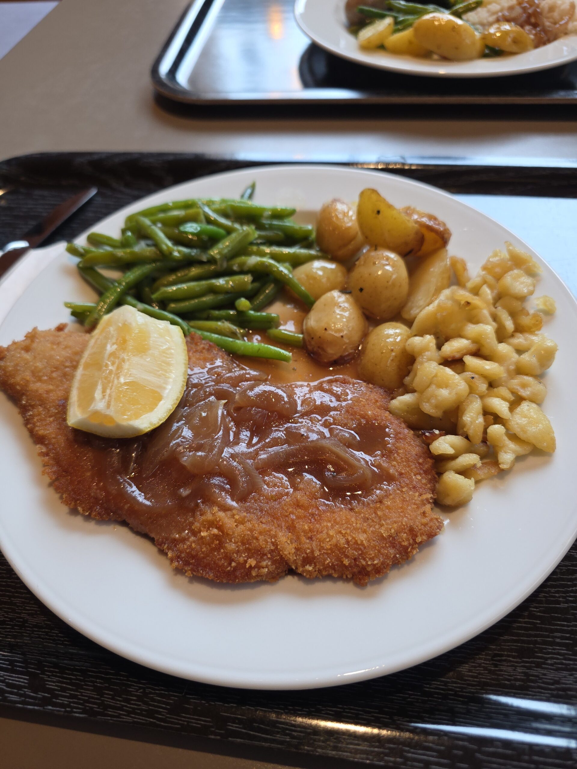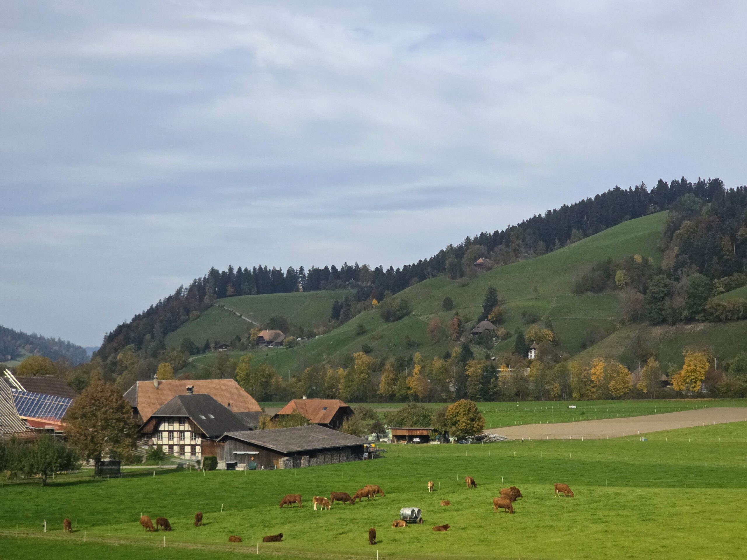 A few hours later we stopped at a rest stop, or Raststätte in German, called Gotthard Raststätte Fahrtrichtung. This place was nothing like the rest stops I’m used to in the US or even the ones I’ve seen on past European trips. Not only is it surrounded by impressive Alpine scenery, but it also had a clean and inviting feel, with a food court offering a large variety of fresh food. It had a mix of freshly baked goods, traditional meals, and even ramen. I kept it simple and got Jägerschnitzel with Spätzle, potatoes, and green beans. It was surprisingly good, way better than anything I expected from a roadside stop. Less than two hours later we were in Guggisberg, and after that the plan was to get back on the Autobahn and make it to Frankfurt for the night.