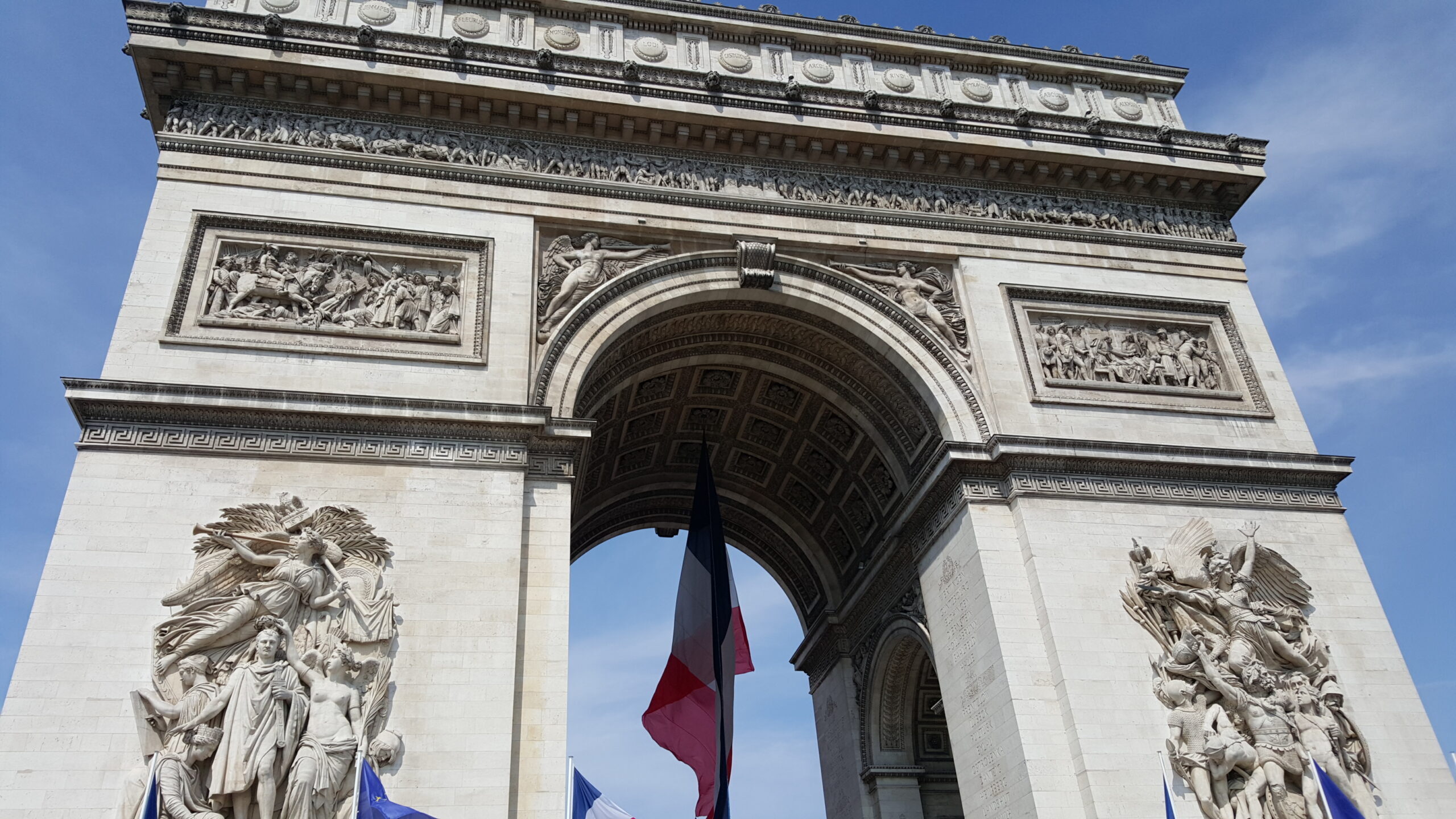 The following day, we visited the Arc de Triomphe, which was decorated with a giant French flag for VE Day. I think we just missed the parade down the Champs-Élysées, but that was ok. I was just happy to be there. Standing beneath the massive French flag hanging form the arch, looking at the Tomb of the Unknown Soldier was a profound moment or me. I felt a rush of gratitude for the countless men and women who stood up to Nazi Germany and changed the course of history, especially those who never came home.